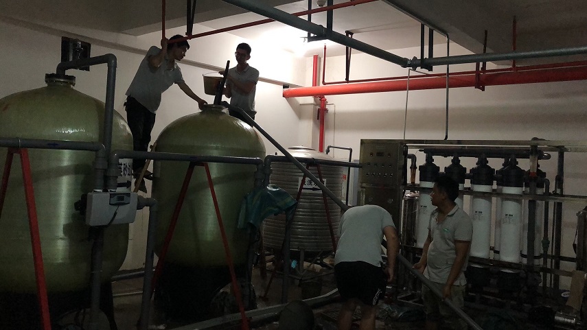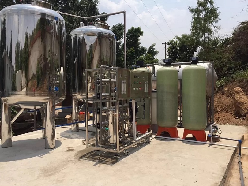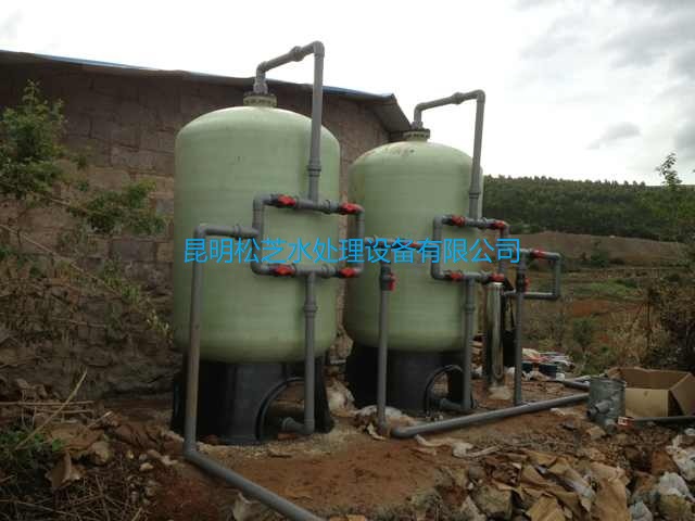 地下水、水庫水中含有多種雜質(zhì),如懸浮物、膠體、重金屬、有機(jī)物、鐵銹和無機(jī)鹽等,為保證水質(zhì)達(dá)標(biāo),則必須先去除水中的懸浮物、膠體、有機(jī)物等,使反滲透的進(jìn)水達(dá)到要求,故本系統(tǒng)設(shè)置多介質(zhì)過濾器+活性炭過濾器+軟化器+殺菌作為原水處理系統(tǒng)。本處理系統(tǒng)包括原水箱、原水增壓泵、多介質(zhì)過濾器、活性炭過濾器、離子交換軟水器、殺菌設(shè)備、凈化水水箱及反洗系統(tǒng)。